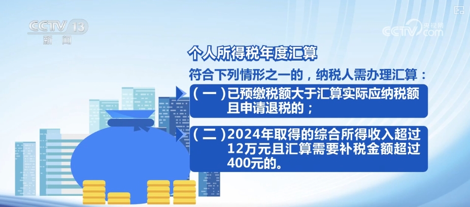 (一)已预缴税额大于汇算实际应纳税额且申请退税的;(二)2024年取得的综合所得收入超过12万元且汇算需要补税金额超过400元的。