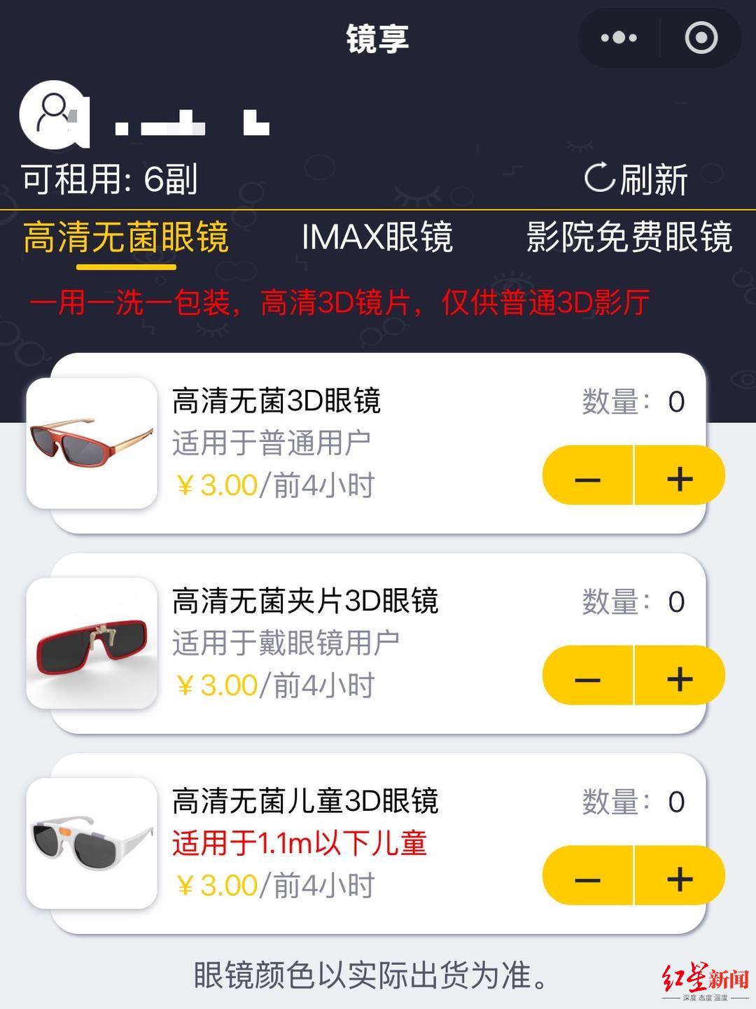 除了购买3D眼镜外,部分影院也推出了3D眼镜自助租借机器,消费者扫码进入小程序后即可选择有偿租借一次性3D眼镜,或无偿租借普通3D眼镜。