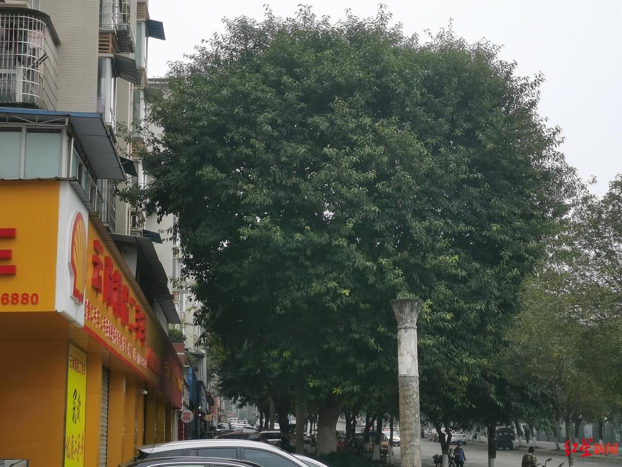 ▲五星路棕榈湾小区一侧栽种的两排黄桷树