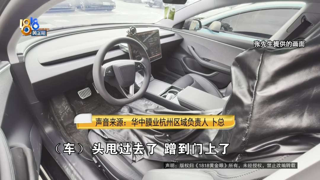 华中膜业杭州区域负责人 卜总:他(店员)应该斜着往里面倒,回方向、再上那个坡。那个坡有坡度,他没有回方向,一踩油门(加速踏板),车头甩过去了,蹭到门上了。