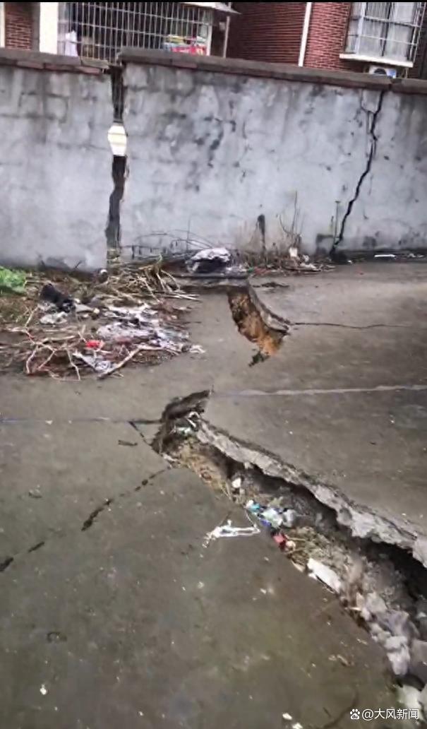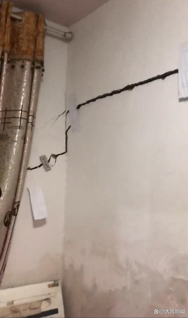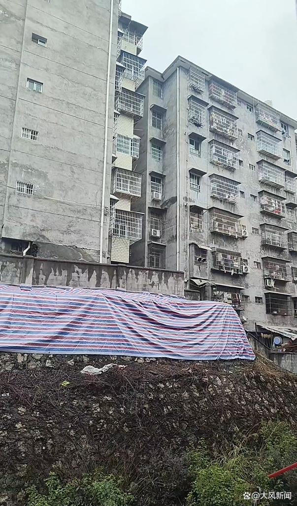 另有网友发布的现场视频显示,紧挨小区的一道大约10米高的堡坎,已经盖起了防雨帆布。隔壁老旧小区地面和墙体出现大约10cm左右宽的裂缝,有排水管道裸露,屋内墙面也出现明显裂缝,疑似已无人居住。