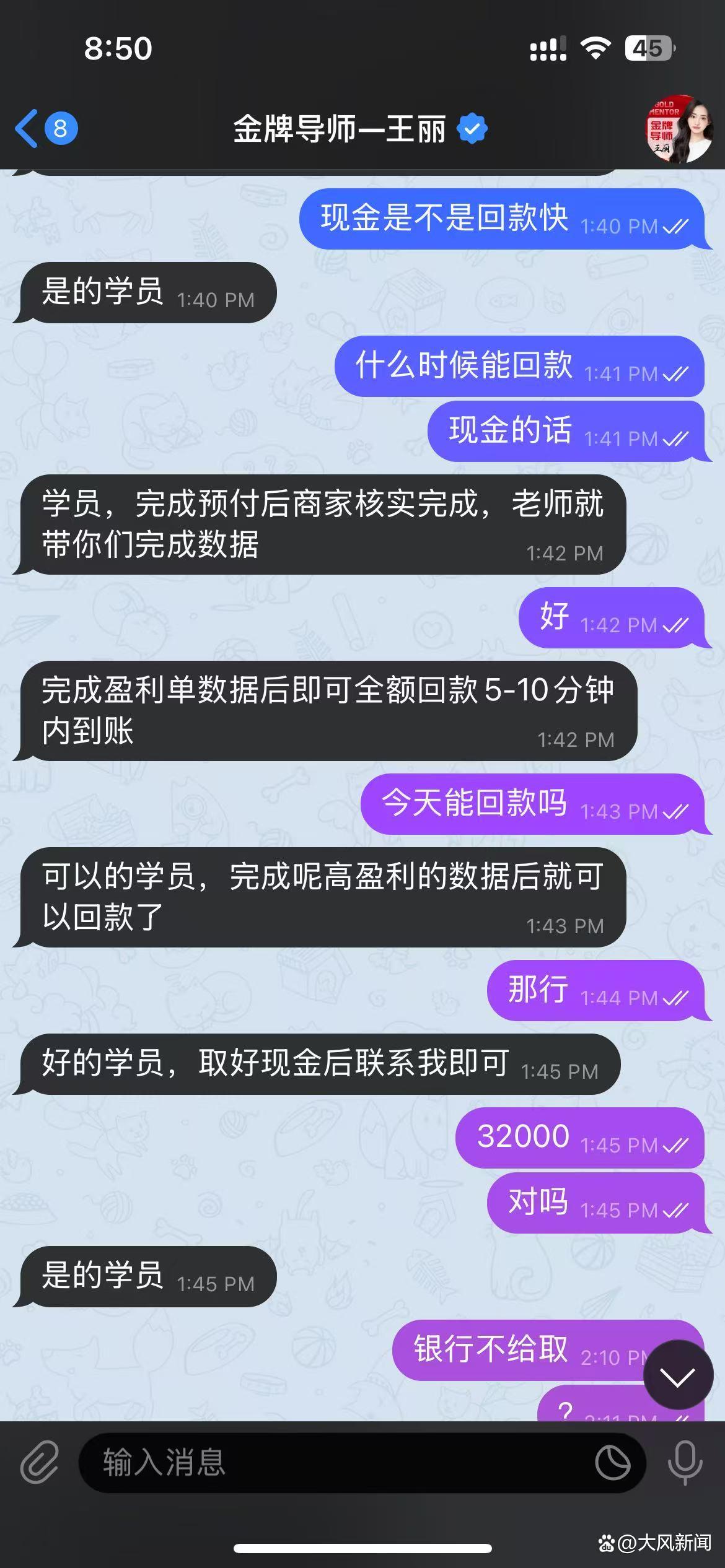 注册该App后,戈先生跟着群内所谓的指导老师操作,参与了第一笔刷单返现活动。他在App里购买了500元黄金,没过多久,500元本金就返还到了他的账户,还额外获得了100多元的奖励。“指导老师不让我提现,说新人福利多,让我先把新人活动做完再提现。之后第二个任务有三个选项,分别是购买4000元、20000元、32000元的商品,其中购买32000元商品的返现高达1万多元。”戈先生回忆,“在指导老师的鼓动下,我一时冲动,选择了购买32000元商品的返现活动。”