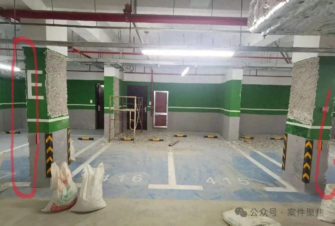 2024.11.9 业主发现小区土建竣工验收完成后,地下车库承重柱被施工人员削薄。