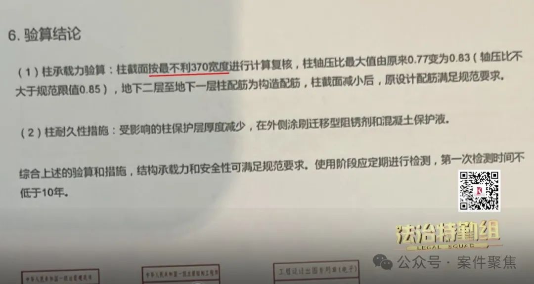 对于削柱行为的性质,后援律师周志强也发表了自己的看法。在他看来,建设工程是有明确的法律规定,如果变更图纸或者降低质量标准需要向相关部门进行申报,申报合格才能进行变更。业主可以进行维权,在合理合法的情形下向有关部门投诉、申诉,甚至去检阅建筑工程的程序合法性。