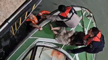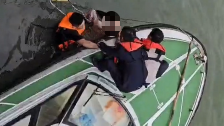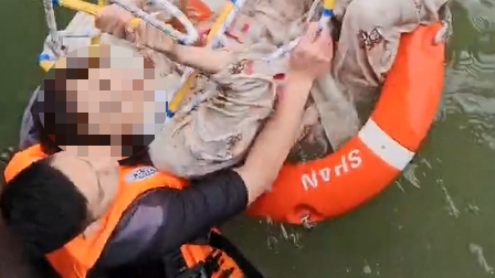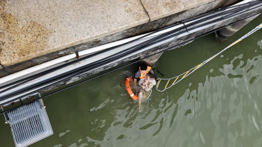 李忠跃与孙绍舫合力将救生圈绑在绳梯上