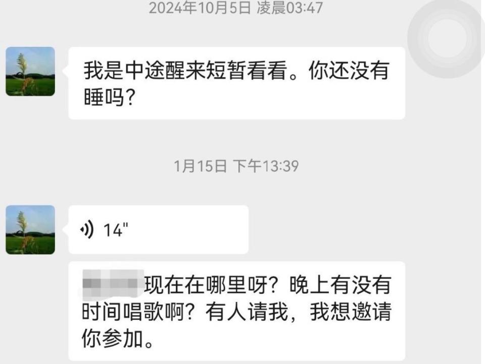 小张发出的微信聊天截图显示,2024年10月5日凌晨3时47分,彭泽润发信息给小张称:“我是中途醒来短暂看看。你还没有睡吗?”小张并未回复。“因为他现在不教我了,我也无所谓。但是如果是我的老师,我可能真的不知道怎么办。”