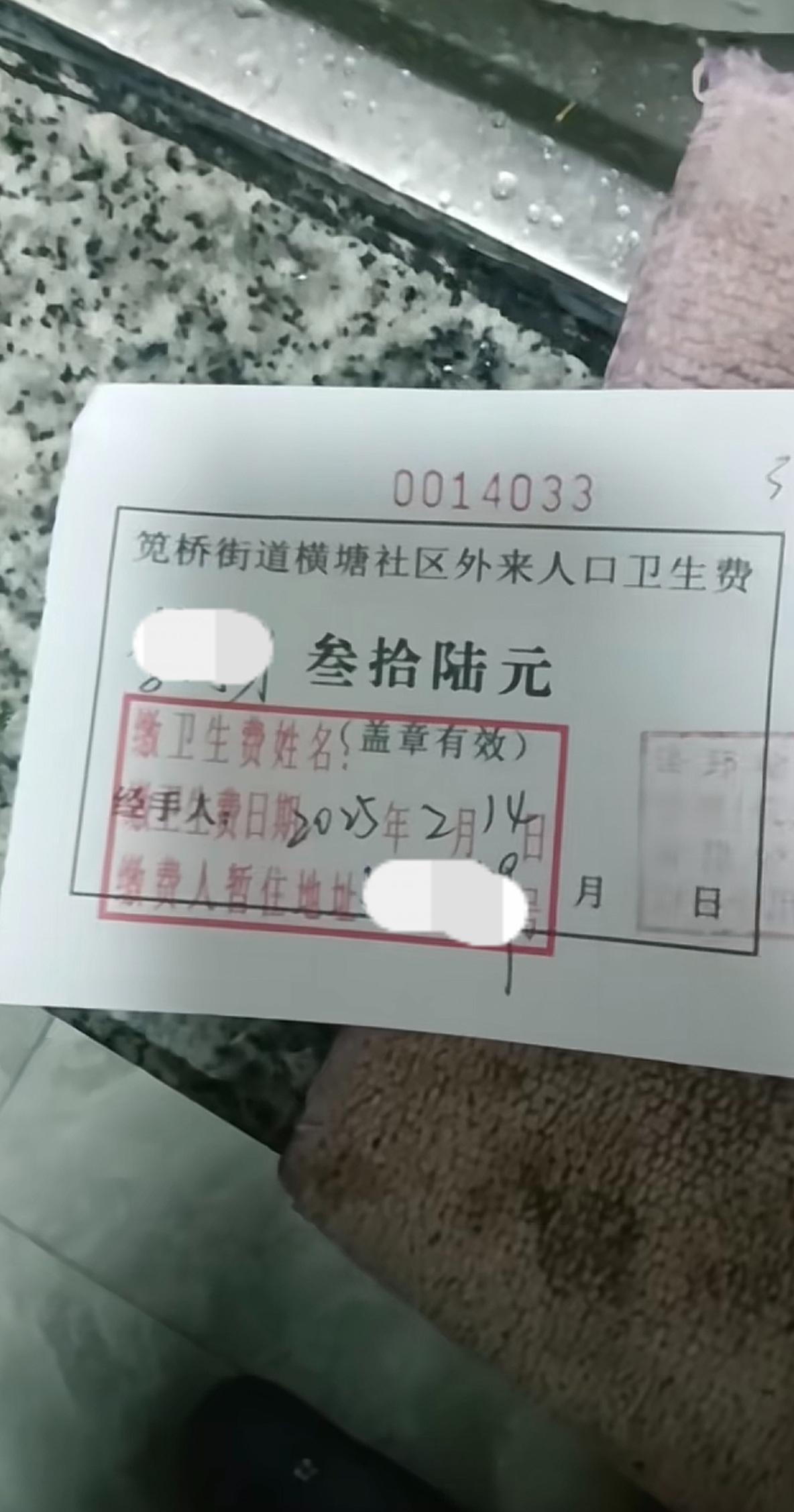 2月28日,横塘社区的工作人员告诉读特新闻记者,这笔费用是外来人员办理暂住证时必须收取的,其目的是覆盖垃圾清运的相关费用。