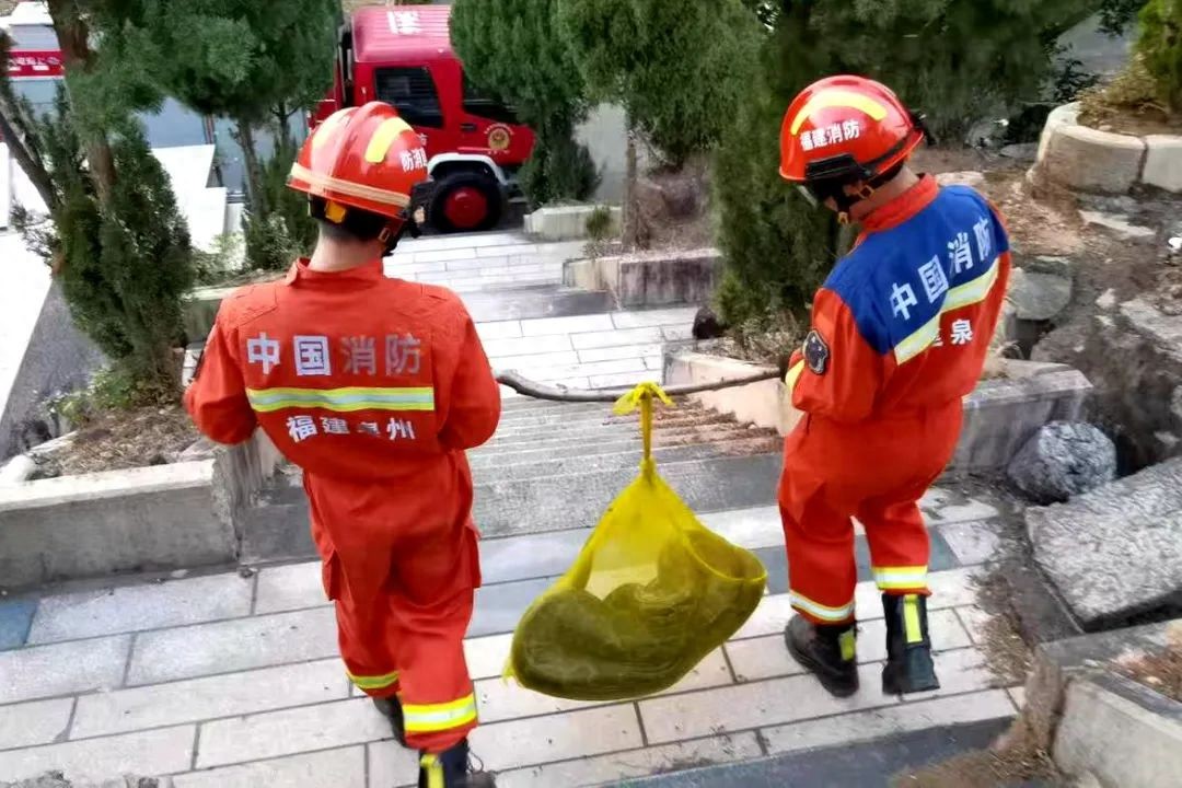 据福建消防消息,近日,福建泉州市泉港区涂岭镇松园村松园陵园出现一条大蛇,正在陵园内工作的员工们发现后,随即报警求助。