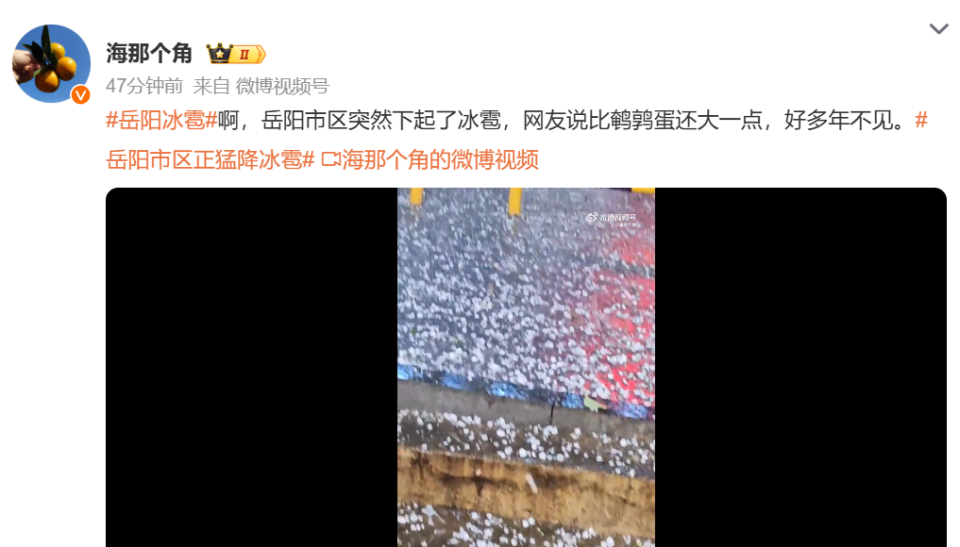 今天白天岳阳最高气温冲到 28℃左右,晚上竟直接下起冰雹了。