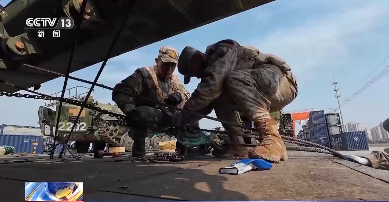第71集团军某旅王航航:我们针对履带和轮式等不同类型、不同大小的装备,分别采用了轻型和中型器材来进行捆绑加固,不仅加深了对不同器材在捆绑加固过程中的使用方法,也确保了不同装备在运输过程中的稳定性。