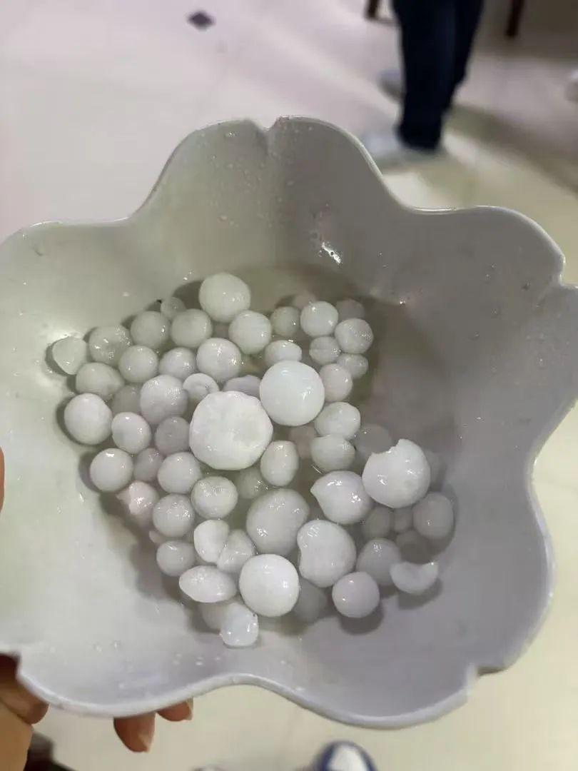 从照片中可以看到,白白的颗粒状的物体就是冰雹。