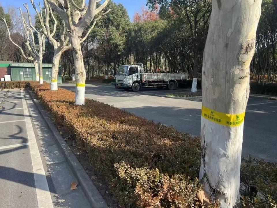 通过在树干上缠绕粘虫胶带,可以有效阻止害虫上树,减少其对树木的侵害。