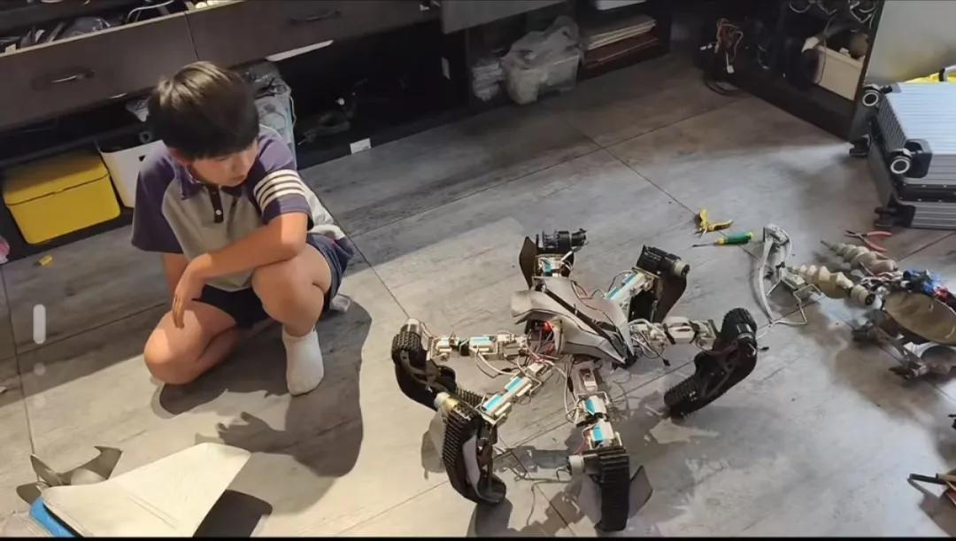 “这是我们做的六足蜘蛛!它可以用履带行走,也可以像蜘蛛一样行走!”一个长着6只“脚”的机器人行走自如,还可随时变换形态,成为一辆用履带行驶的“装甲兽”!