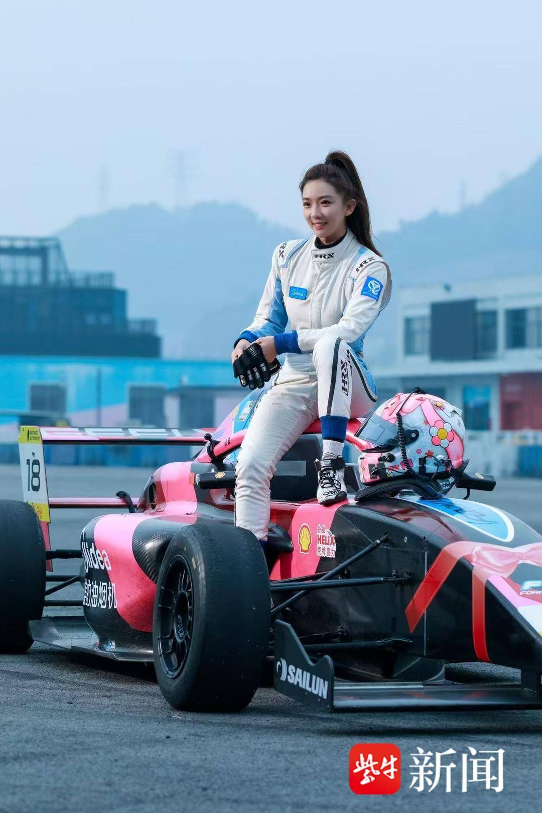 穿上赛车服的“铁豆”英姿飒爽