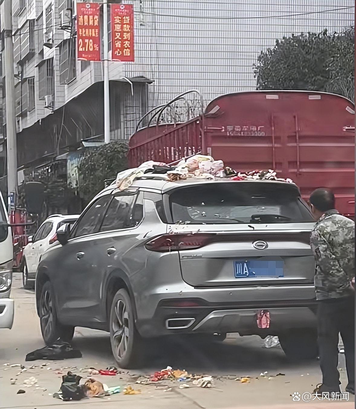 3月6日,网友发视频反映四川南充一辆私家车疑挡住环卫车清运垃圾,环卫车女司机把垃圾直接扔在私家车顶。