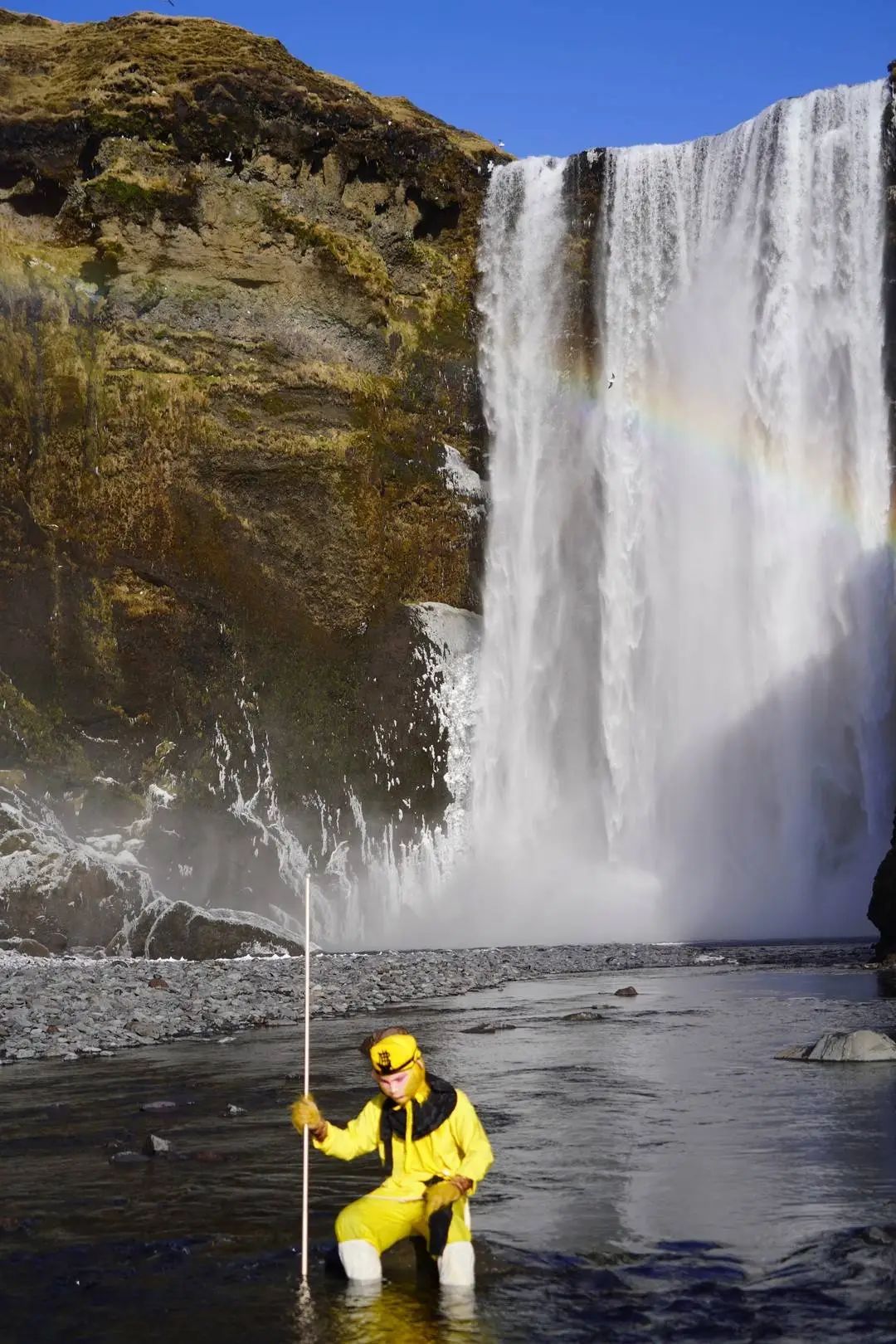 从照片可见,镜头里,小姐姐举着手机与孙悟空开心自拍,画面中的孙悟空正是86版《西游记》里的经典扮相,身后则是冰岛著名的斯科加瀑布,这样的组合极具冲击力。