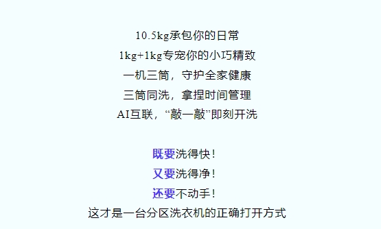 但两小一大该怎么分配?据海尔官方,小筒容量为1kg,三筒能同时工作,“敲一敲”就能即刻开洗。