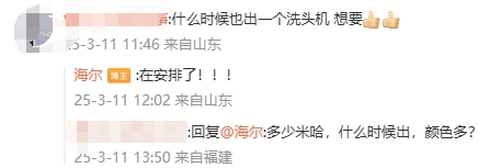 更惊人的是,有网友想要一台洗头机,海尔竟然也回复称在安排了,被网友的“懒癌”程度和海尔的宠粉程度同时震惊到。