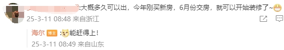 有网友询问到6月新房开始装修能不能买到,海尔给予了肯定答复。相信在近段时间,消费者马上就能购买到这款懒人福音洗衣机。