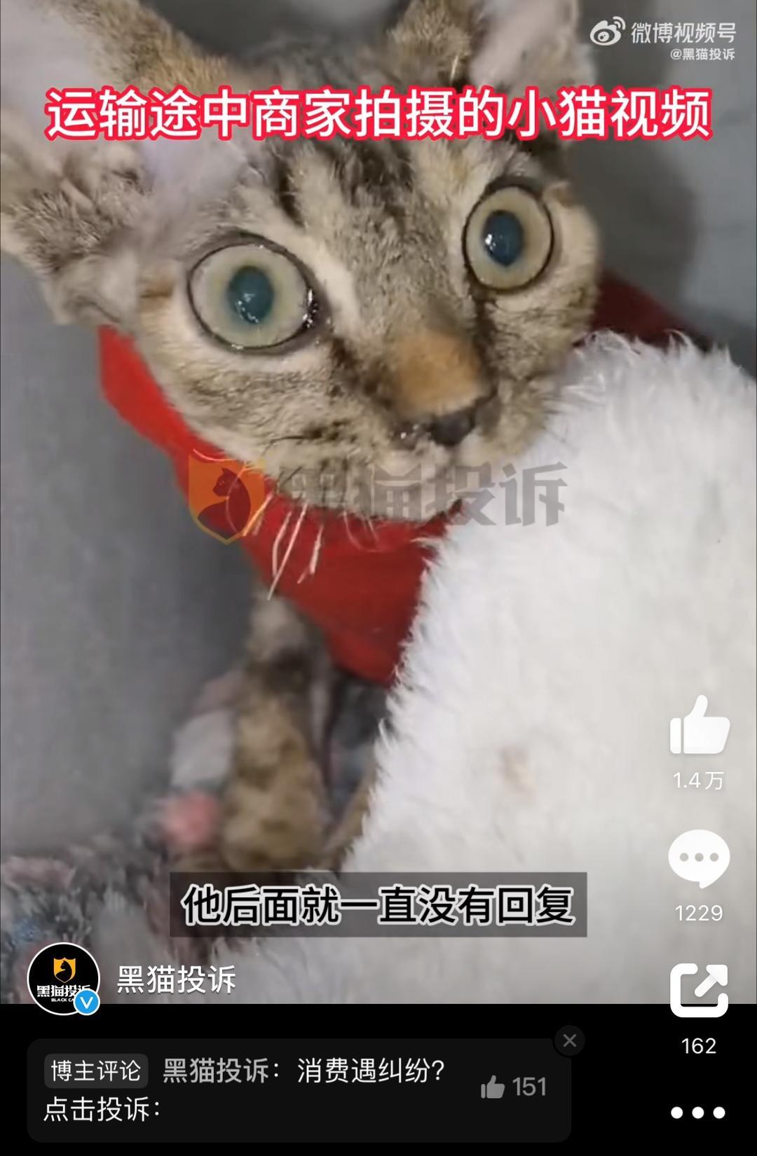 ▲消费者投诉花470元空运德文猫只收到尸体 黑猫投诉截图