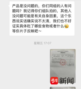 小林称,她与商家及平台沟通索赔医药费525.65元、误工费458元、打车费40元,不过对方并不认可。在她提供的聊天记录中,平台对接账号提到让小林回顾自身饮食和接触人员情况,随后将她移出合作群聊。聊天中,对方称小林的索赔行为属于“敲诈勒索”,并表示“肠胃娇弱就别接探店单子”。小林随后向南京市12345热线及市场监管部门投诉。