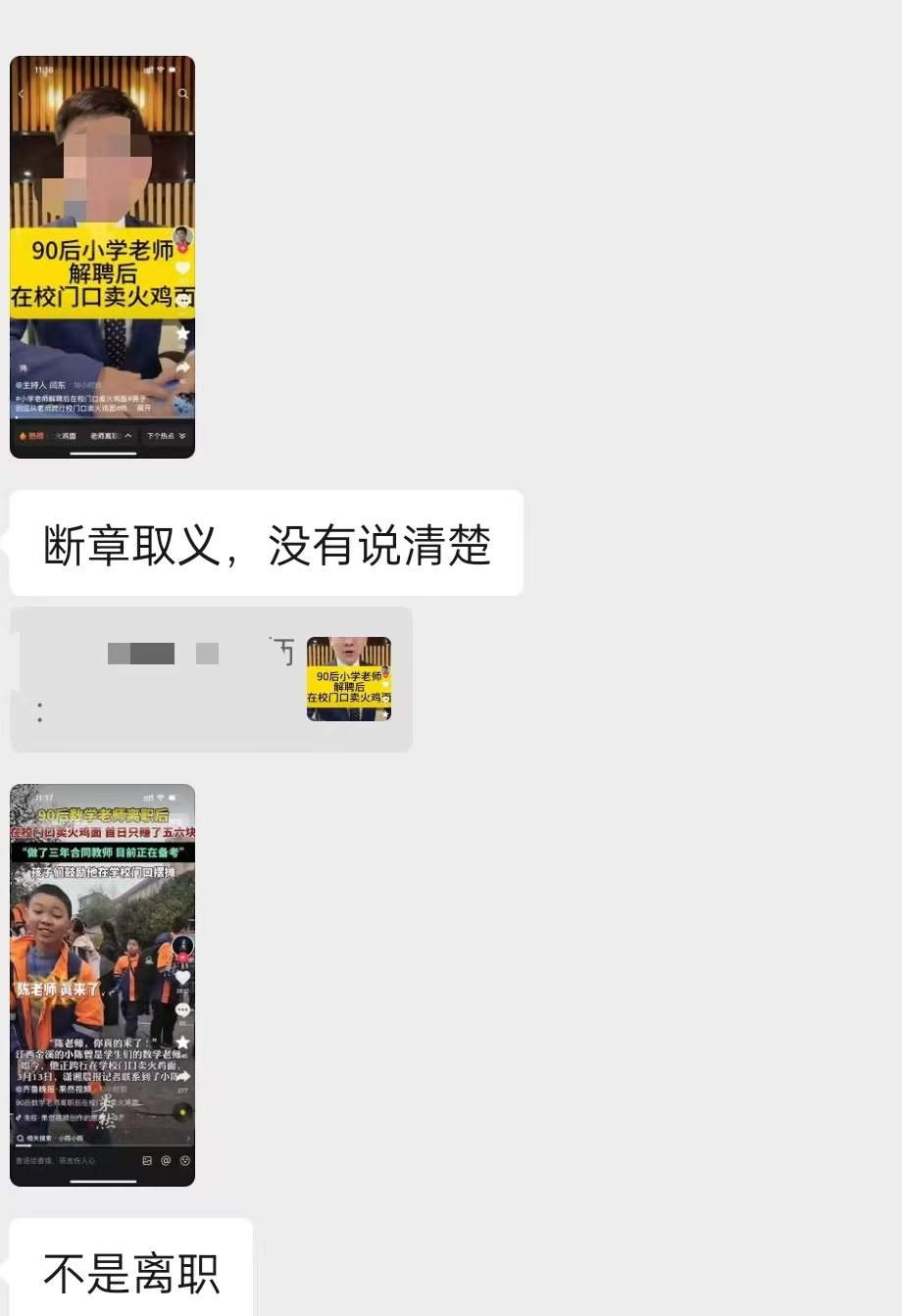 3月14日,小陈在接受潇湘晨报记者采访时再次解释了转行卖火鸡面的原因,自己是3年合同到期后离开岗位,并非网上误传的解聘、开除等情况。对于网上不实信息,小陈感到十分无奈,他称自己曾多次举报投诉,但因数量过多难以处理。