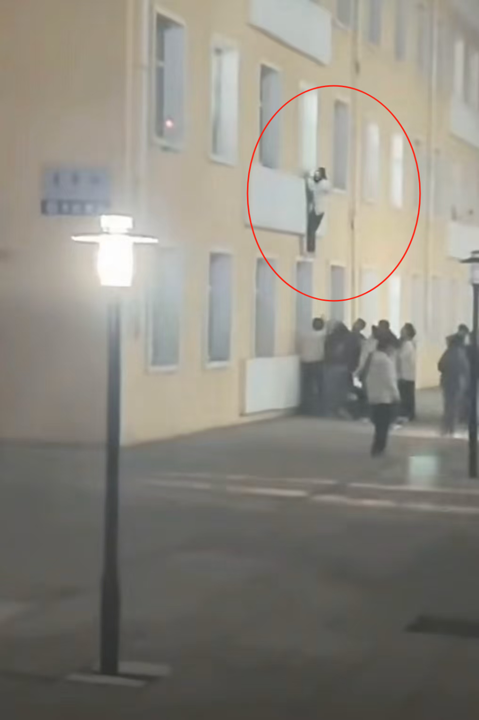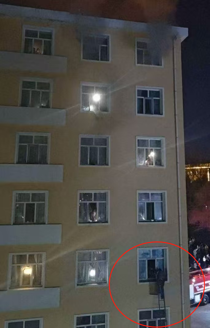 网上流传的相关照片和视频显示,宿舍楼第二层有明显火光,此外,顶层第七层的窗子也冒出浓雾。有人借助梯子或云梯从窗户撤离,还有人悬挂在二楼窗外,窗外下方有多人尝试接应。