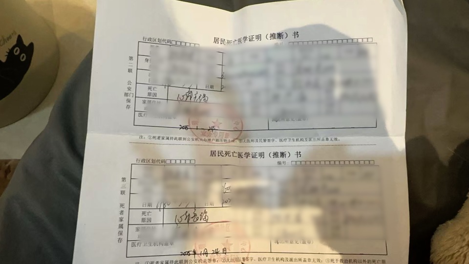 张女士说,“叔叔”尸体被发现后,当天法医开具了死亡医学证明书,死亡原因为“心脏衰竭”。但是当时家属急于将“叔叔”火化下葬,没有要求进一步尸检。
