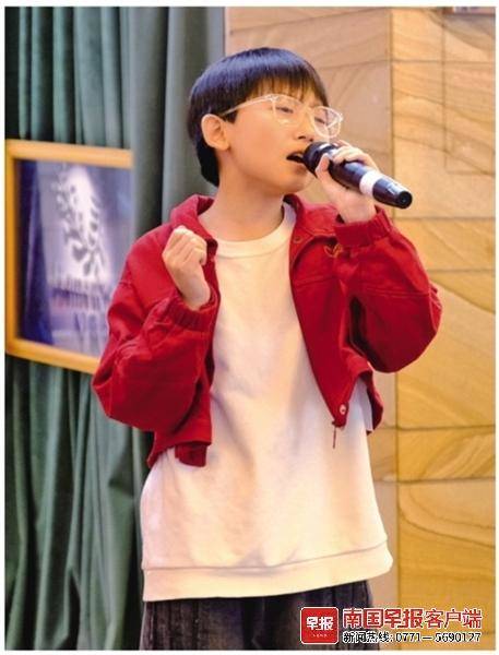 在热闹而繁华的南宁市中越路,一个手持话筒的小小身影,用清亮的歌声吸引众人驻足聆听。11岁的林星成,这名来自南宁市秀安路小学六年级的少年,每周雷打不动地在此路演。