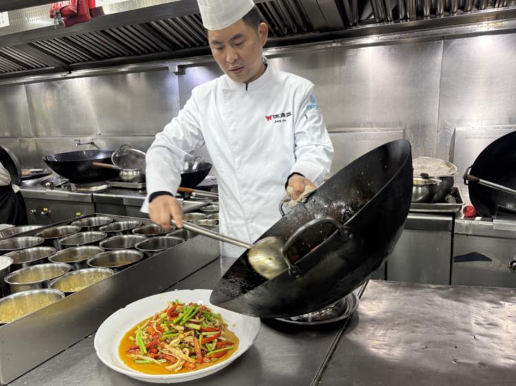 从业20余年,蒋海主攻传统川渝菜,老辈称之为“江湖菜”,讲究猛火爆炒、一锅成菜、充分保留锅气。但渐渐地,他发现很多年轻厨师会简化做菜步骤,传统手艺在失传。