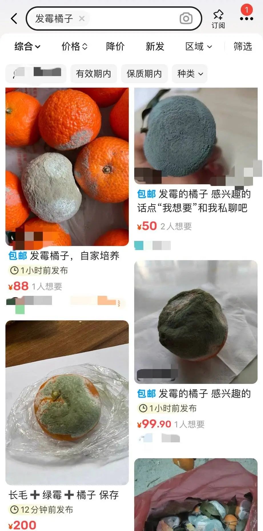 “这个世界真是让我大开眼界!”3月20日,来自江苏的小刘在社交平台发出感慨,她表示偶然发现朋友给的橙子忘了吃,已经被霉菌全覆盖,非常均匀,于是猎奇想发布到二手平台看看有没有人要,结果发现在二手平台上有很多人也在卖发霉的橘子。