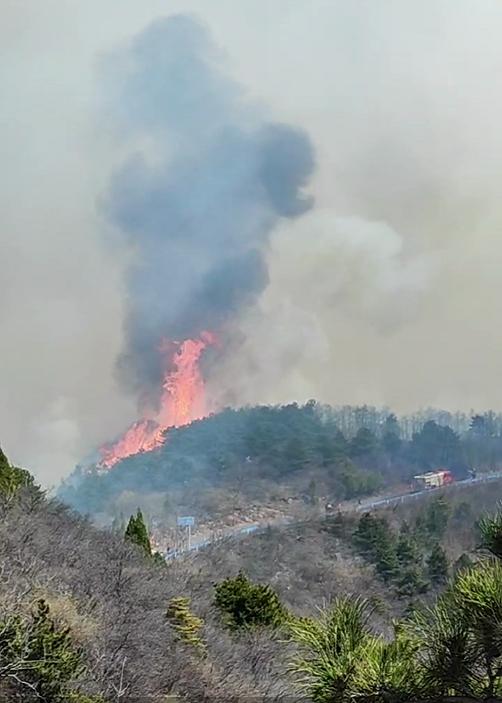 “我们正在扑救,现在是全市的力量都在扑救。因为山上没有水,只能是就近取水灭火。”