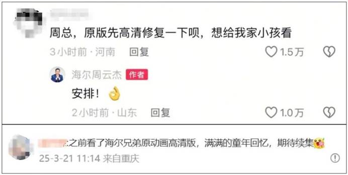 同一天,周云杰在短视频平台发布第一条视频。他身着正装,胸前别着“海尔兄弟”徽章,让不少网友直呼“太正式了”。视频的末尾还公布了几条拍摄花絮,拍摄者不断要求周云杰“再来一条”,周云杰自述:“把这些理工男都逼疯了”。