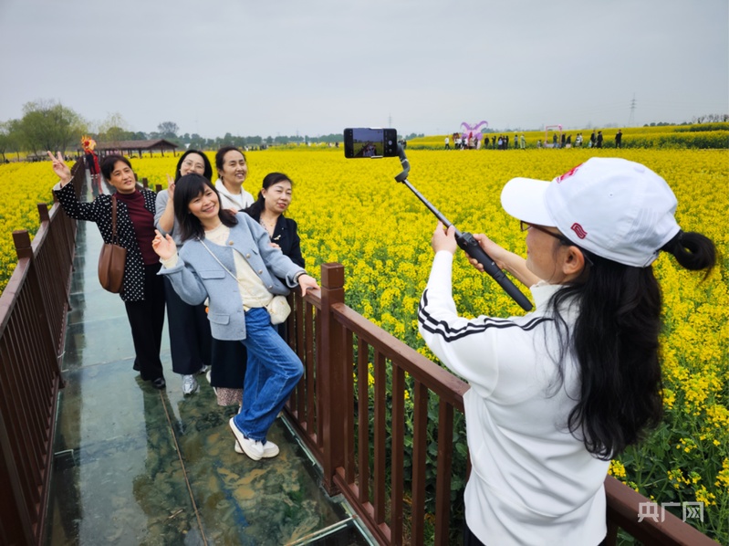 游客在油菜花海中打卡(央广网记者左洋摄)