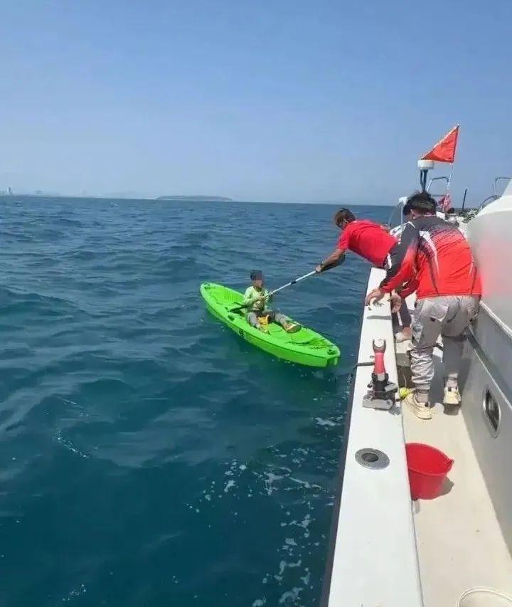 据罗船长讲述,在海上靠近后才看清是一个小孩,互相对话后,他一下就哭了。“他当时还是很害怕的,一直在哭,他说自己出门钓鱼,不小心被浪冲走,在海里漂了一夜,找不到回家的路。”罗船长说。