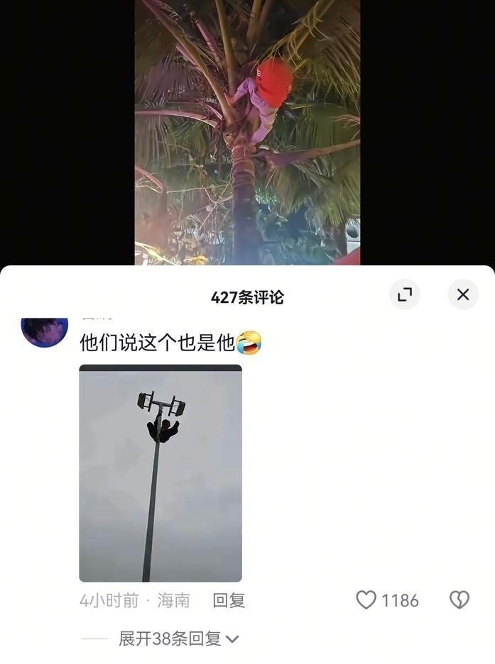 记者注意到,不少当地网友挖出阿亮的“调皮黑历史”,称他经常爬树、爬路灯杆,还曾火烧土地庙,寻人启事上的照片是他在讲台受罚时拍的。还有网友发布视频称,阿亮回家的当晚,还爬上椰子树,吊在树枝上荡秋千。