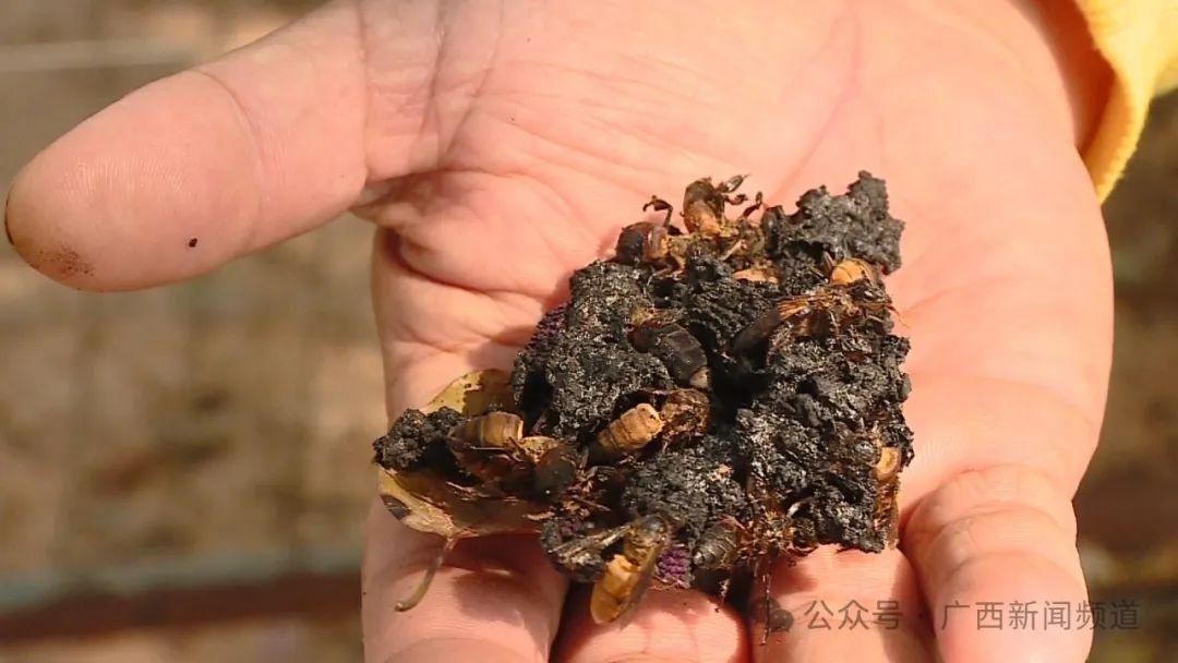养蜂人通过蜜蜂形态和挂巢方式判断,这是野生大蜜蜂,又名大排蜂、大挂蜂,有着巨无霸体型,其中,工蜂体长约两三厘米,在中国只有黑色和黄色两种。