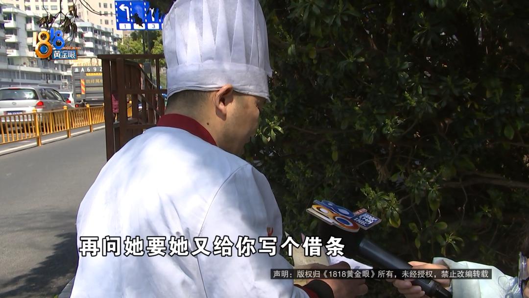 汪厨师:到期了我就问她要,她就改了个日期时间,再给你写个借条。改了的借条到期了,再问她要她又给你写个借条。