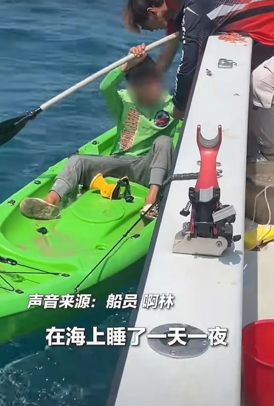 据此前媒体报道,3月22日下午两点多,从事海钓服务工作的小杨,与同事、客人一起从三亚后海湾出发,前往海钓区钓鱼。在距离岸边10海里(约18.52公里)的海域,发现远处有一条绿色小船,上边有一个瘦小的身影。