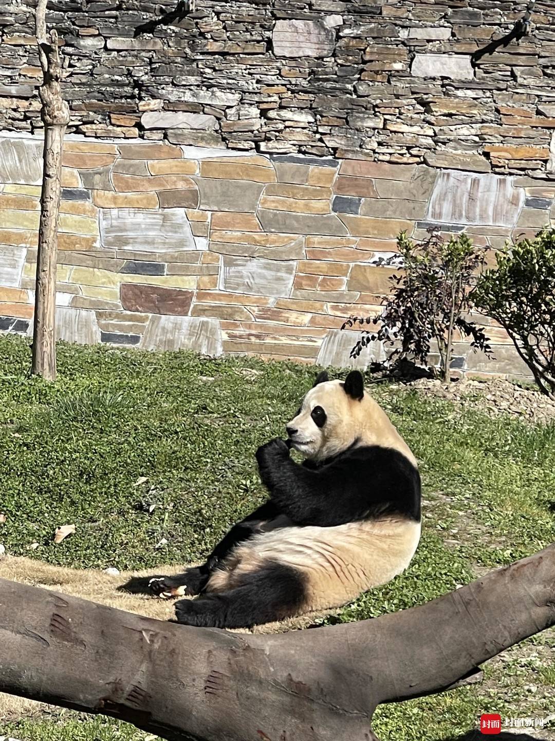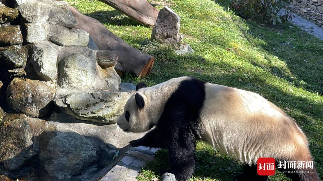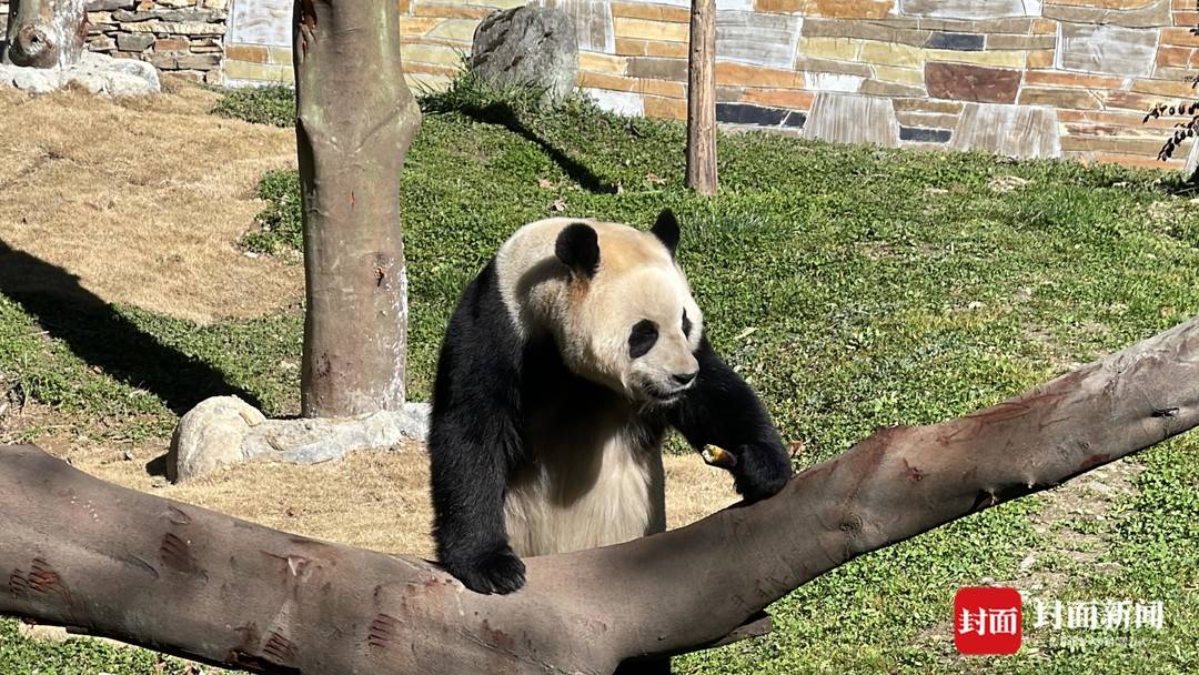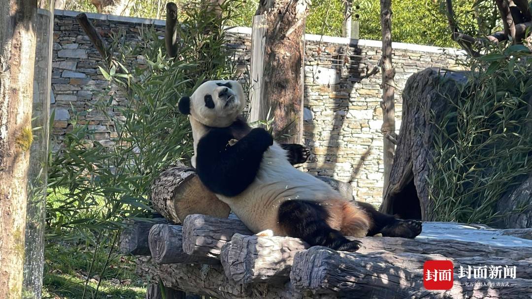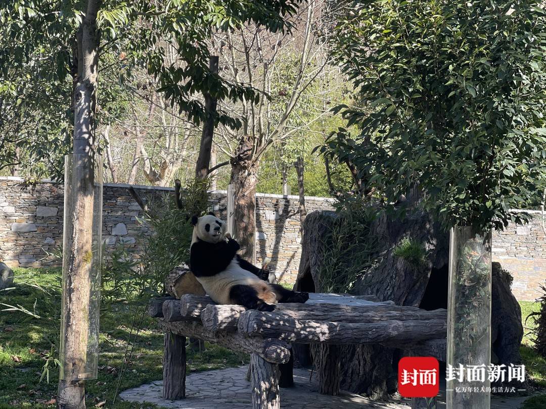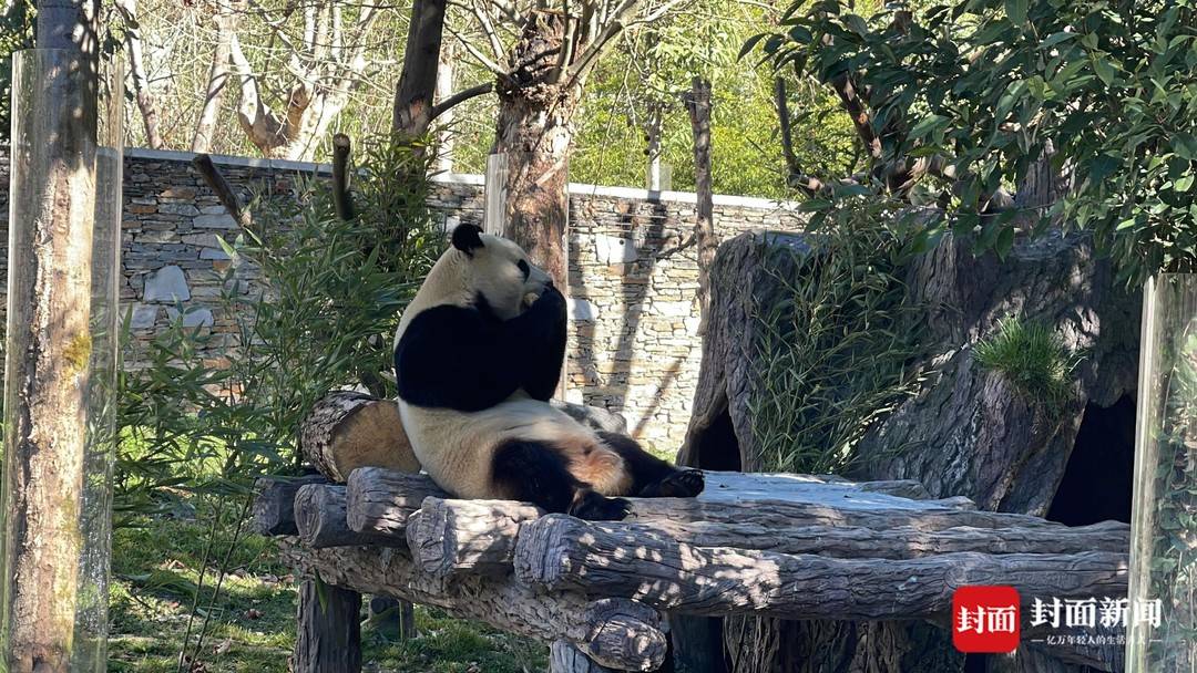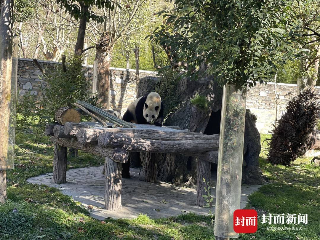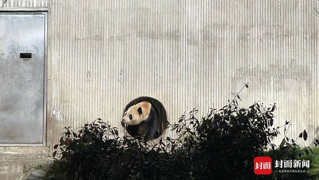 “福宝”出场后,在自己“新装修”的家中四处闻闻嗅嗅,找到笋笋就坐下来大快朵颐,萌态十足。
