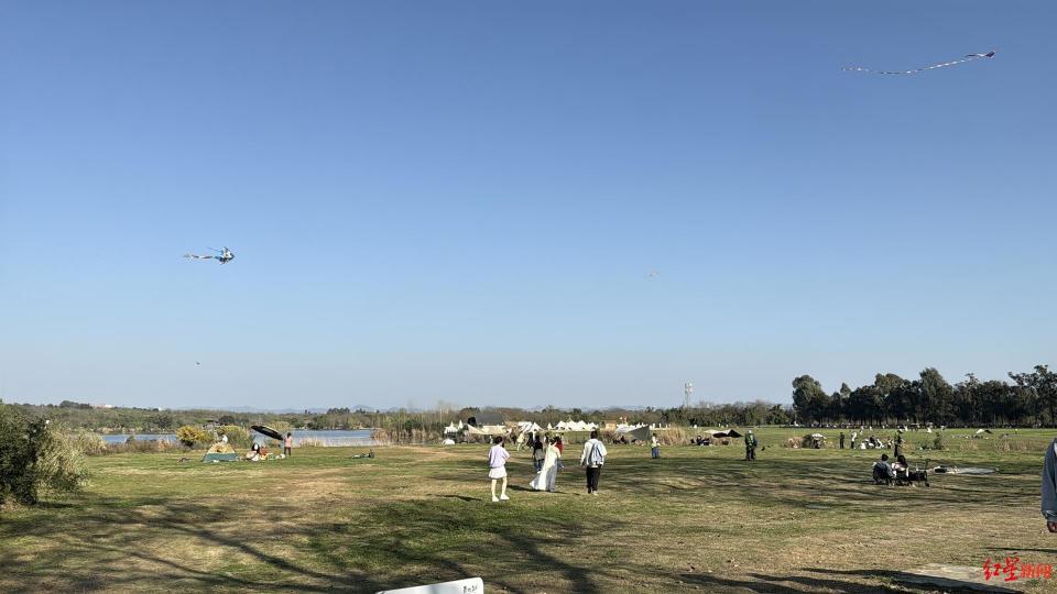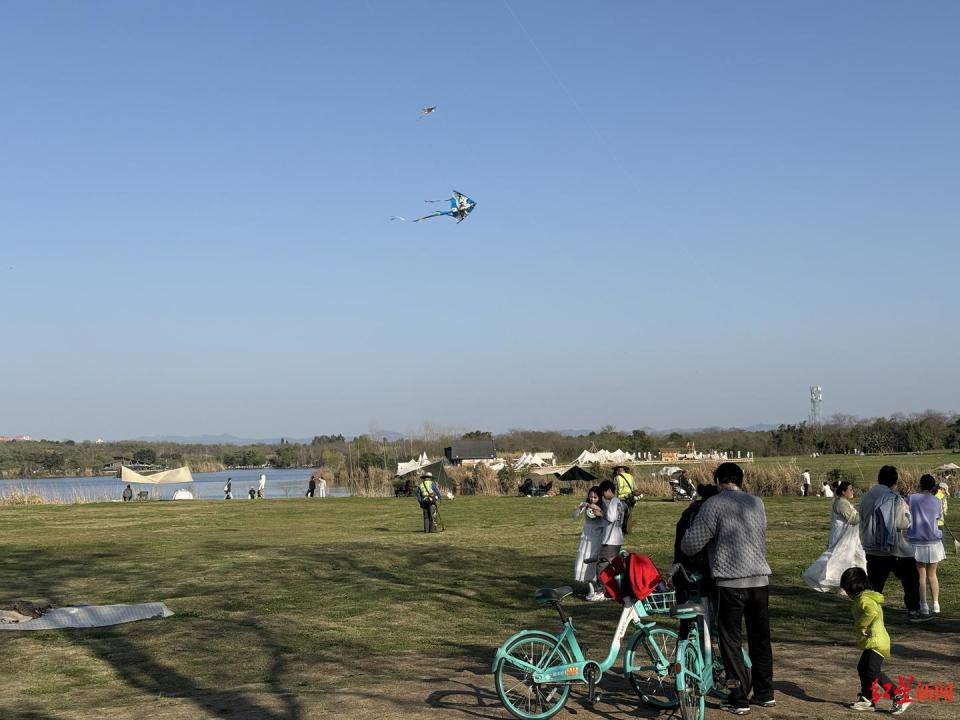 24日,红星新闻记者在青龙湖湿地公园探访时看到,现场确有不少市民在放风筝,还有不少市民拿着风筝进入。社交平台上也有多人分享在附近放风筝的画面,或相约前往该处放风筝。据了解,全长100公里的环城绿道穿过了桂溪生态公园、青龙湖公园、锦城湖、三圣乡等121个生态公园。青龙湖外,无论是在桂溪生态公园,还是在三圣乡,均可看到有不少市民放风筝。
