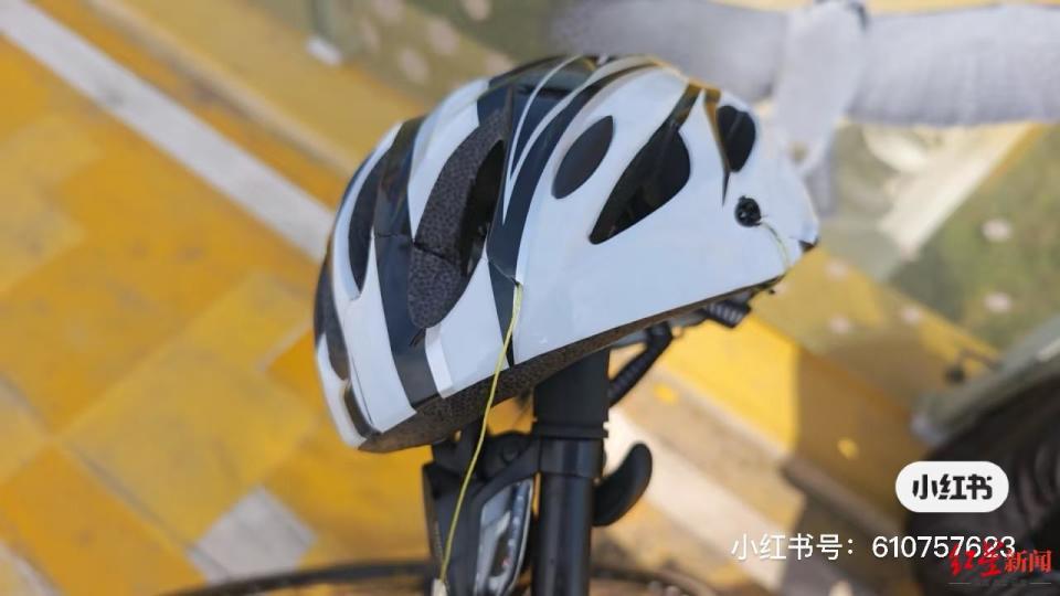 23日,一市民在成都环城生态区青龙湖湿地公园路段骑行途中遭风筝线“割头”,在其发布的事发视频中,横着的风筝线将其刮倒在地,并嵌进骑行头盔,割出近10厘米的裂口。