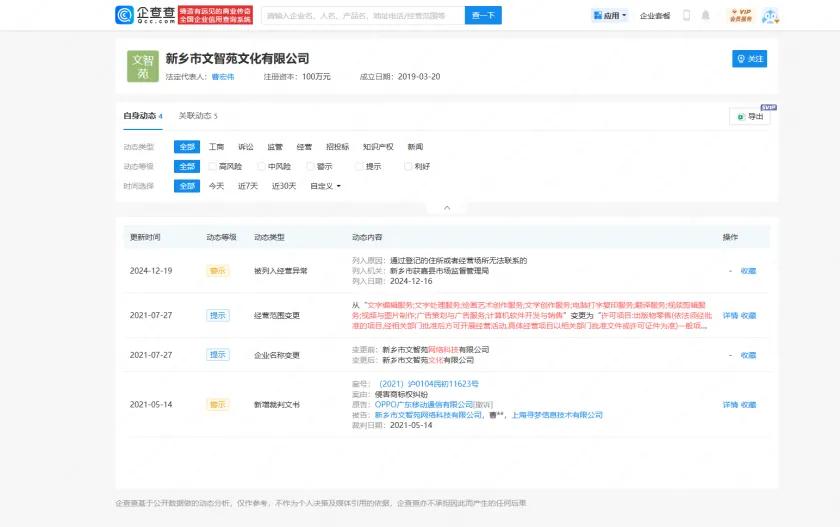 发现异常后,李女士通过电子付款凭据,发现收款人叫“曹宏伟”,并且查到曹宏伟是“新乡市文智苑文化有限公司”的法人。
