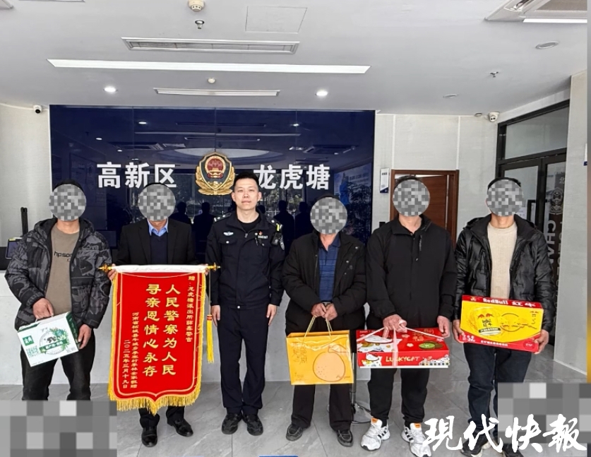 晓金一家人还特意给薛警官送上一面印有“人民警察为人民,寻亲恩情心永存”字样的锦旗,向民警表示感谢。