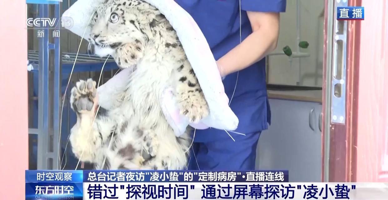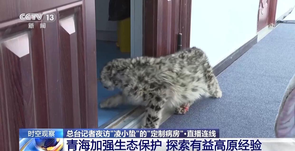 总台记者 马雅慧:在青海野生动物救护繁育中心的兽医院,为了不打扰小雪豹休息,我们就到“ 凌小蛰”病房旁边的房间,通过监控大屏了解它目前的状况。