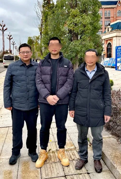 张厉已被取保候审,图为张厉父子和辩护律师周兆成。
