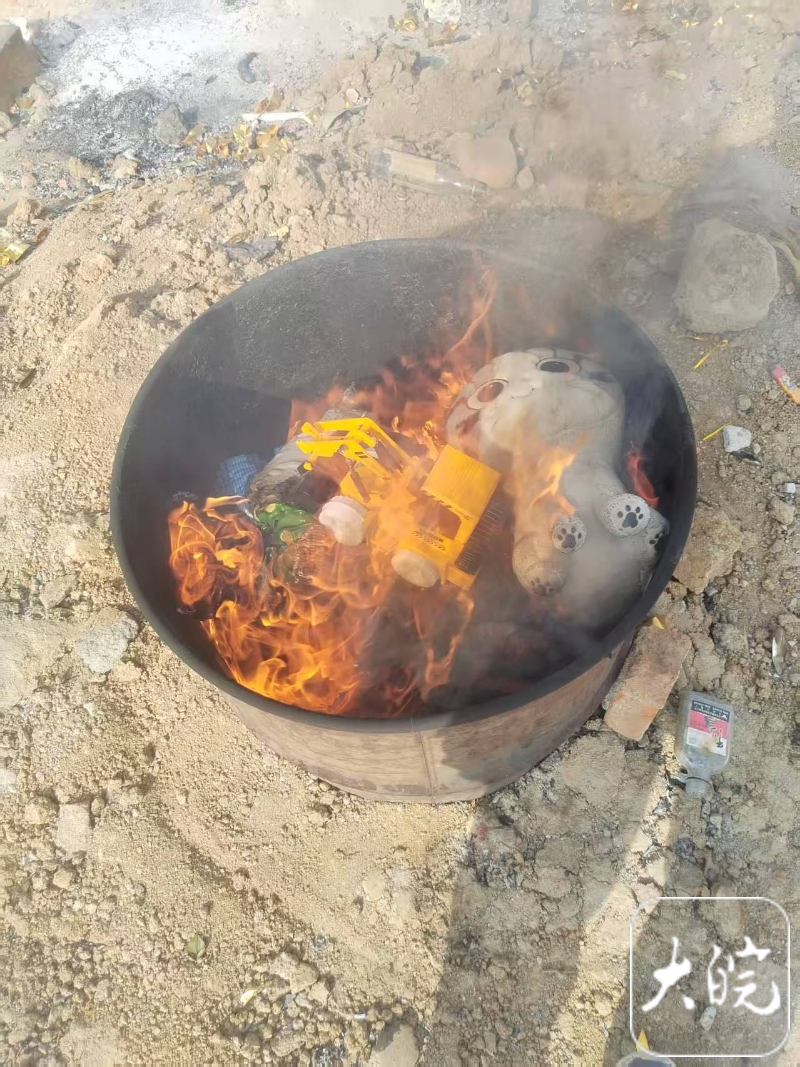 26日一早,郑建华将孙子涵涵生前喜欢的玩具收拾起来,放进一处空地的铁桶中。随着火焰燃烧,他将孙子生前的物品烧掉。积木、毛绒玩具、被子、卡通遮阳帽……郑建华说,这些都是孙子生前喜欢的东西。