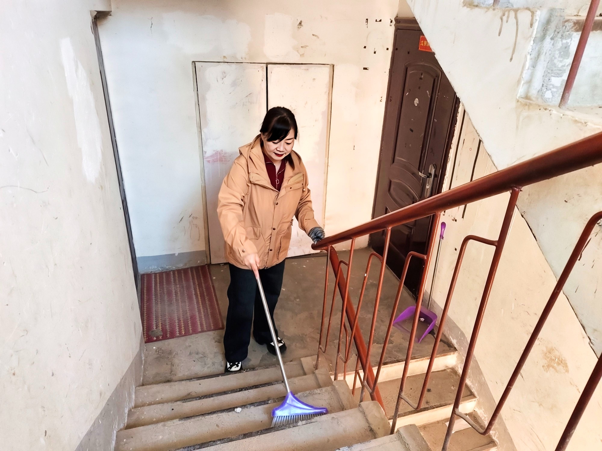 志愿者清洁楼道 (石海 摄)