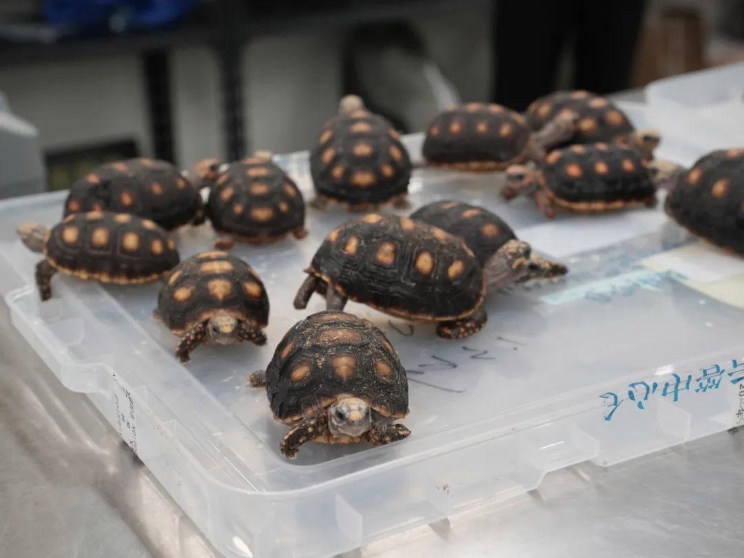 近日,莲塘海关查获进境旅客人身绑藏濒危动物南美陆龟28只。