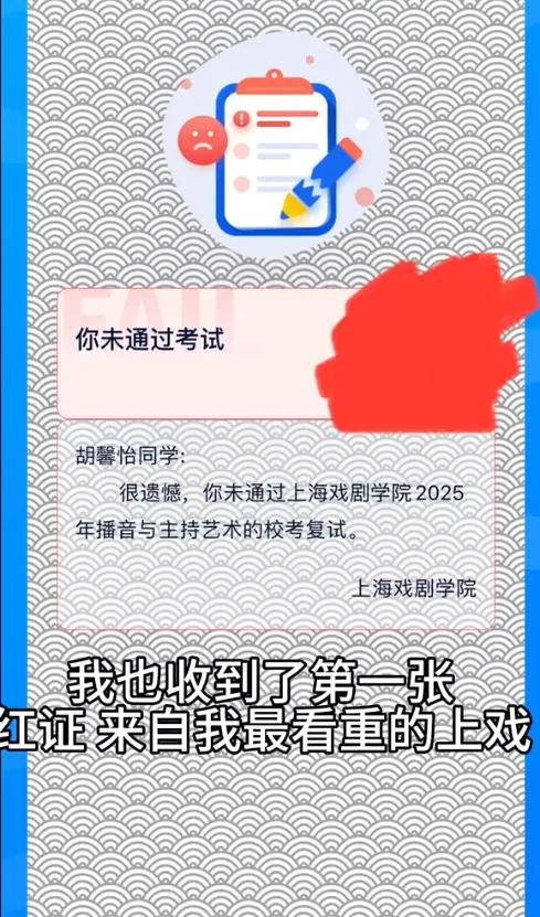 此前,她曾发视频分享艺考经历,并称自己未能通过上海戏剧学院2025年播音与主持艺术的校考复试,这期间有过迷茫,但很快调整心态,冲击浙传和中传。